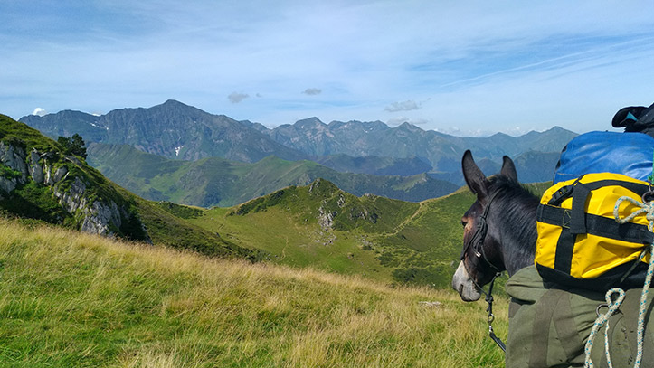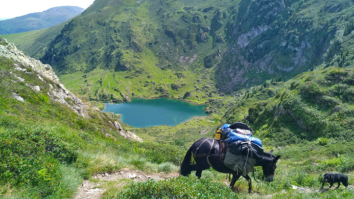 Depuis plus de 5 ans, Cédric arpente la montagne du Couserans et ses estives avec ses mules. Ces animaux font depuis toujours partie de l’histoire des Pyrénées et du lien entre les vallées et les villages éloignés. Parfaitement adaptées aux sentiers et pouvant porter des charges importantes, les mules reprennent leur vocation originelle en étant un des maillons du bon fonctionnement des activités humaines dans les estives : livraison de matériel aux bergers, aux refuges d’altitude… Et au-delà des activités plus traditionnelles, c’est avec Aurélien qu’en duo ils vous proposent des séjours de découverte de la montagne du Couserans avec l’agrément de laisser les compagnons à quatre pattes porter vos affaires et tous ces petits détails qui vous promettent un bivouac de qualité dans le cadre grandiose de la montagne.