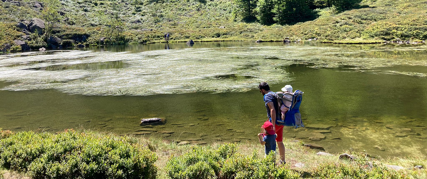 Avec deux bambins en bas âges (la plus grande venant tout juste de souffler ses 3 bougies), je prends soin de choisir une courte balade avec peu de dénivelé à faire sur la matinée, avec un objectif pique-nique au bord de l’eau pour une option trempette de pieds échaudés par la marche si le cœur nous en dit.