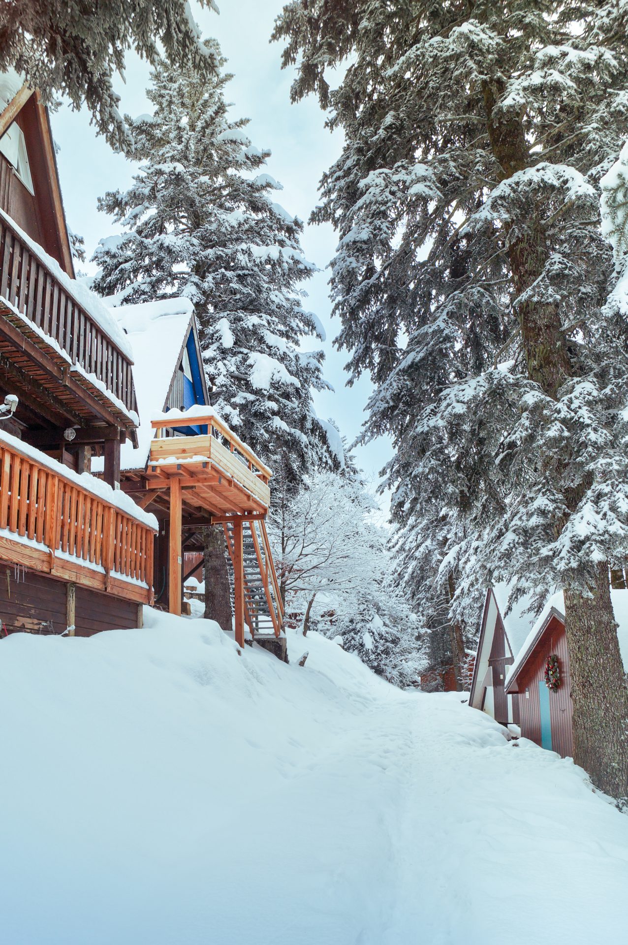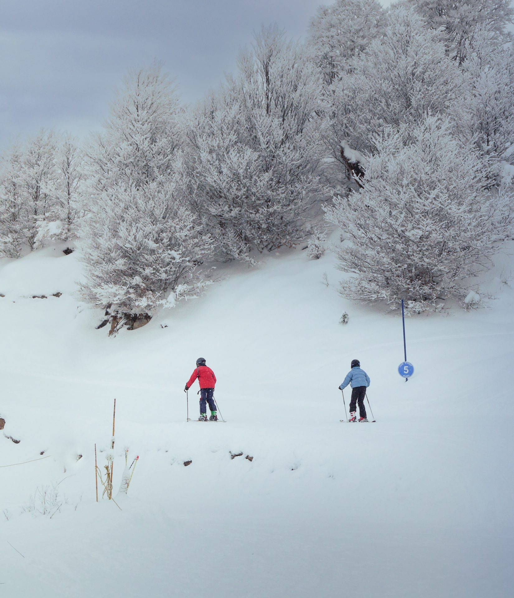 On poursuit notre chemin, entre les sapins enneigés. On voit quelques skieurs qui dévalent les pistes, pendant qu’on dévore des yeux, ce qui s’offre à nous.