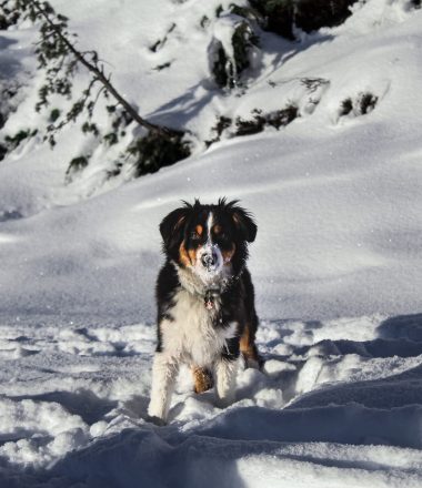 Mon sac à dos est prêt, j’ai bien fait attention de prendre mes sous gants, mon appareil photo, une bouteille d’eau, de quoi grignoter sur le chemin, les raquettes et surtout de bons camarades de marche parce que le bonheur, ça se partage! Ah oui… j’avais oublié notre ami poilu, Andy !