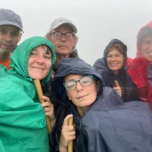 Nous partons d’Eylie à 6, dont Louis 12 ans. Les sacs à dos sont assez lourds : duvets, ponchos, coupe-vent, guêtres, vêtements chauds et moins chauds, une trousse de secours, le pique-nique du midi et une gourde d’eau. 12 kg, je ne peux pas faire moins!
