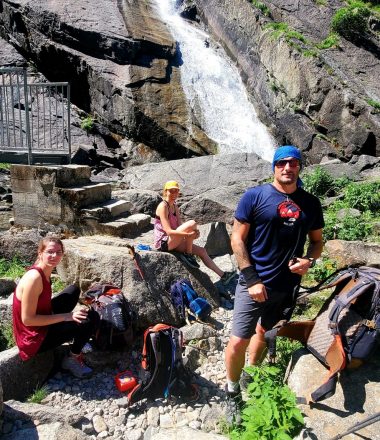 Mi-juillet, journée très chaude (un conseil: partez tôt le matin, à la fraîche!) nous faisons un premier arrêt à la superbe cascade de Nérech où les taons (petite bête volante qui pique) s’en donne à cœur joie pour nous picorer.