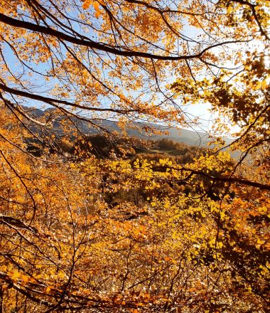 Vite, on s’engouffre dans la forêt clairsemée d’arbres de toutes les couleurs, de rochers mousseux et de ruisseaux. On marche, à travers les rayons du soleil, sur un tapis moelleux de feuilles colorées citrouille, à la saveur de l’enfance.