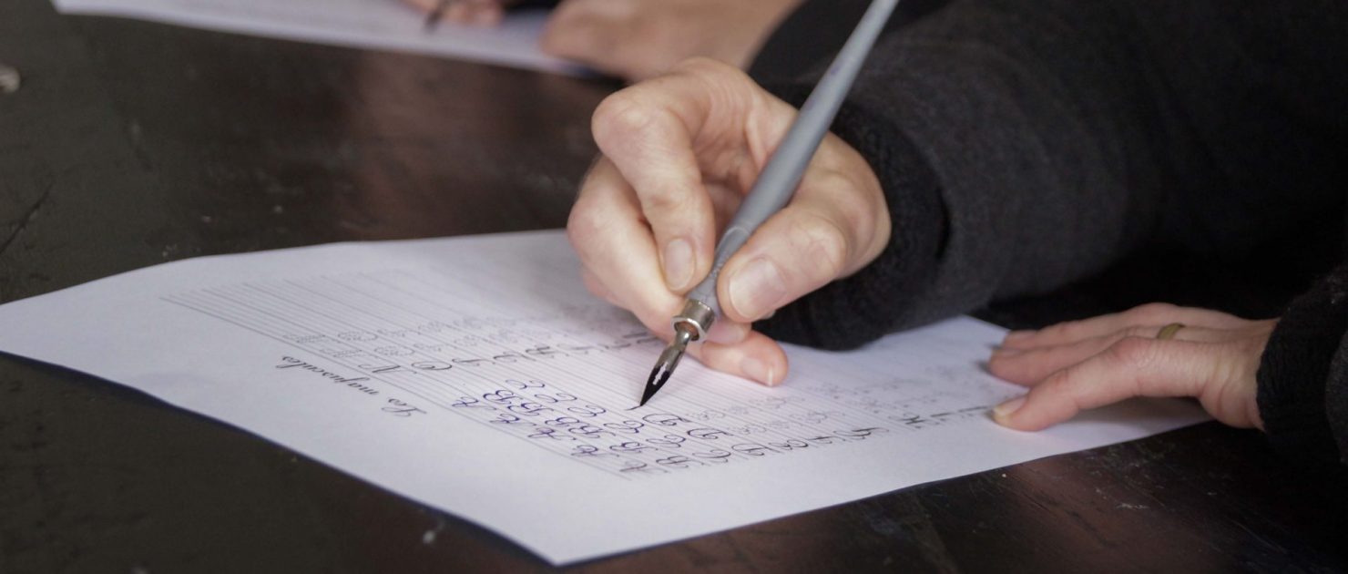 Après le cours magistral, place à l’exercice d’écriture à la plume “Sergent-Major”. Un exercice très technique mais qui ravit petits et grands. Une expérience pour les plus jeunes, un retour en enfance pour les plus âgés. Attention votre instituteur vérifiera les traits et les “pâtés”, il faut donc être appliqué pour ne pas se faire taper sur les doigts !