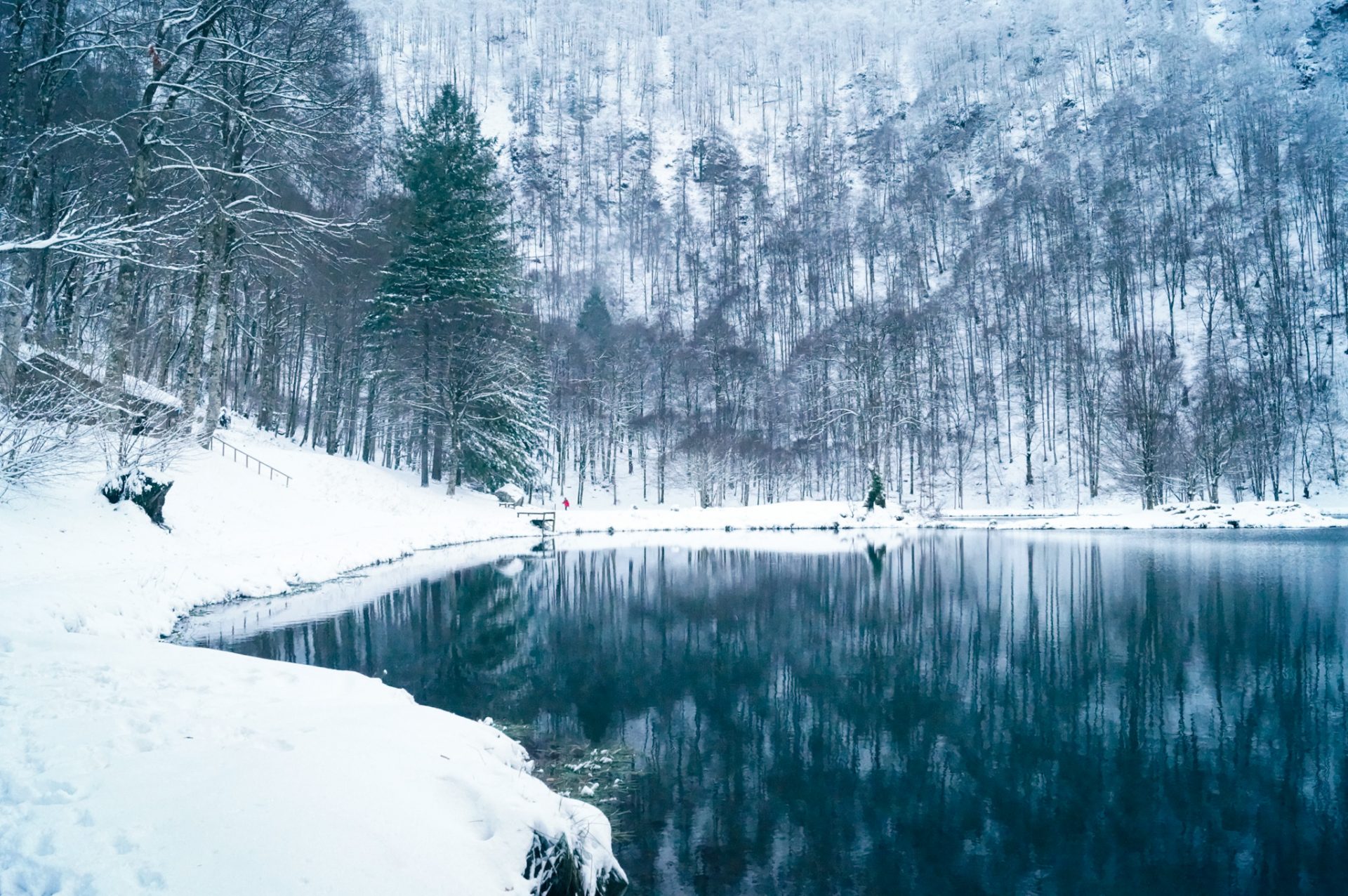 En hiver, lorsque la neige recouvre fraîchement les paysages, le lac de Bethmale, en Ariège, dévoile une atmosphère féerique. Les sapins et les arbres, délicatement emmitouflés de blanc, offrent un contraste saisissant avec la couleur émeraude de l’eau, rendant le site encore plus remarquable et apaisant.