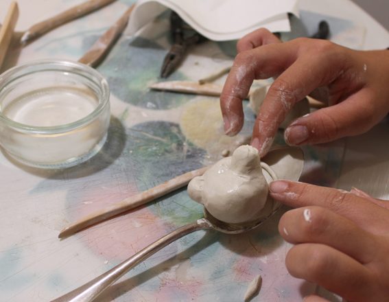 Pour créer votre sculpture, comme Émilie le fait dans son travail, vous choisirez un cuillère à soupe ancienne qui vous est chère ou que vous aurez chiné, l’atelier peut aussi vous en fournir une.