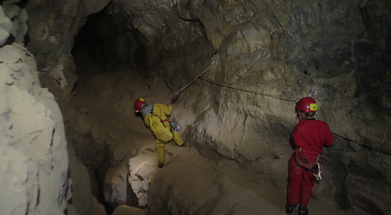 En général il n'y a pas besoin de remonter par l’entrée de la grotte, un autre passage permet d’éviter la difficile remontée sur corde.