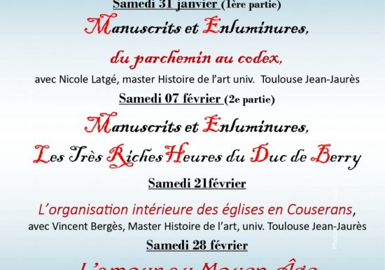 Cette liste n’inclut pas les expositions : consultez la rubrique Art & Culture pour retrouver toutes les expositions du Couserans !