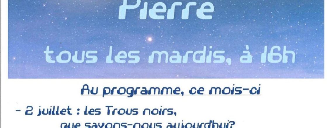 * 4 juillet : Les Trous noirs, que savons-nous aujourd'hui ?
