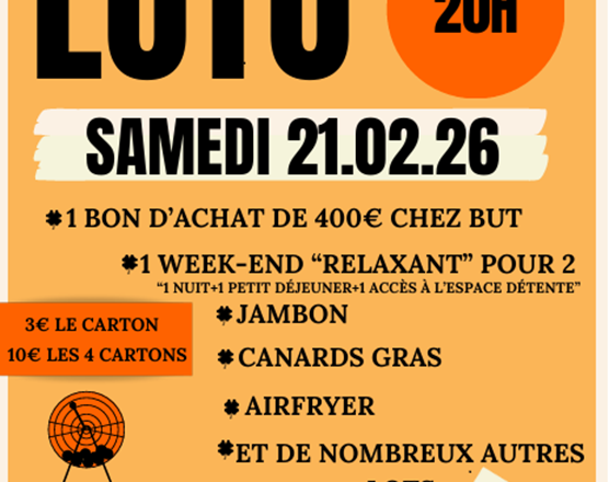 Le Comité des fêtes de Massat et le groupe folklorique Les Liadoures organise le Grand LOTO le Samedi 21 Février 2026 à MASSAT