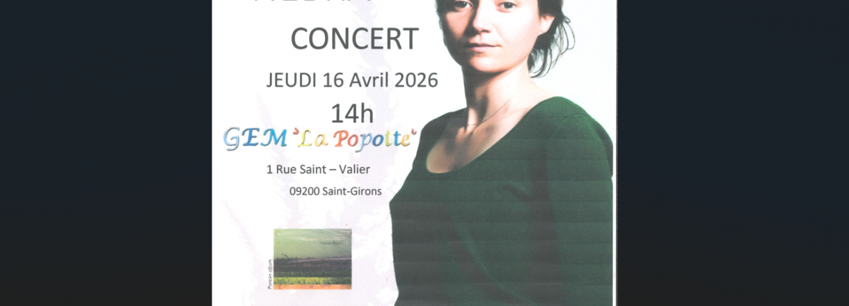 Venez assister au concert de Ludivine Nebra le jeudi 16 avril à 14h00 à GEM "La Popotte".