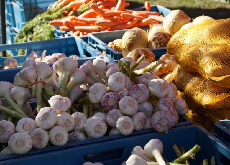 Vous trouverez de la boucherie charcuterie, des légumes de saison, des oeufs, des fromages de chèvre, des plants de plantes aromatiques, et de fleurs ainsi que des plats préparés végétariens ainsi que des croustades.