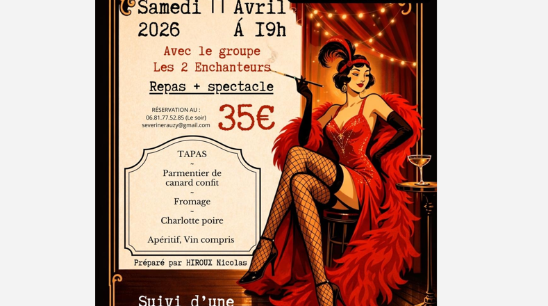 Repas préparé par Nicolas Hiroux et spectacle avec le groupe "Les 2 Enchanteurs", suivi d'une soirée dansante
