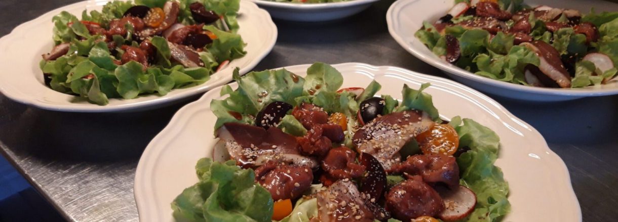 Repas du soir composé de 3 plats, confectionné avec les légumes du jardin et des produits locaux. Possibilité de repas végétariens à la demande.