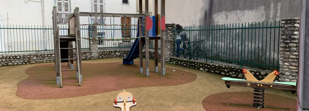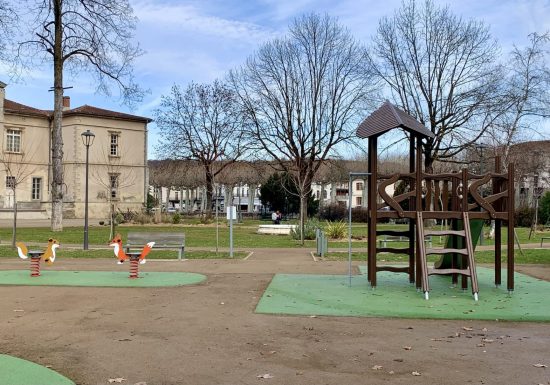 Cette petite aire de jeux sécurisée en plein centre ville est idéale pour une pause ludique avec les enfants. Elle offre une structure complète avec toboggan, petite surface d'escalade, balançoire pour les bébés et les plus grands et jeux à ressorts.