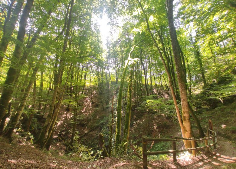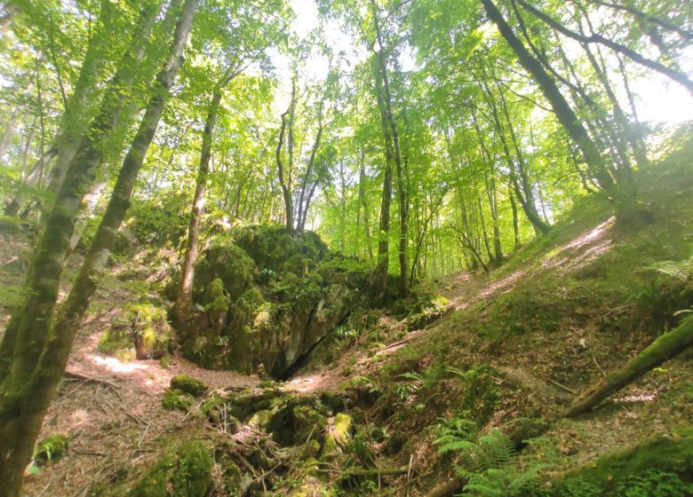 Balade ludique avec panneaux d’interprétation pour découvrir les curiosités géologiques du Massif de Sourroque dont le gouffre Degaudez.