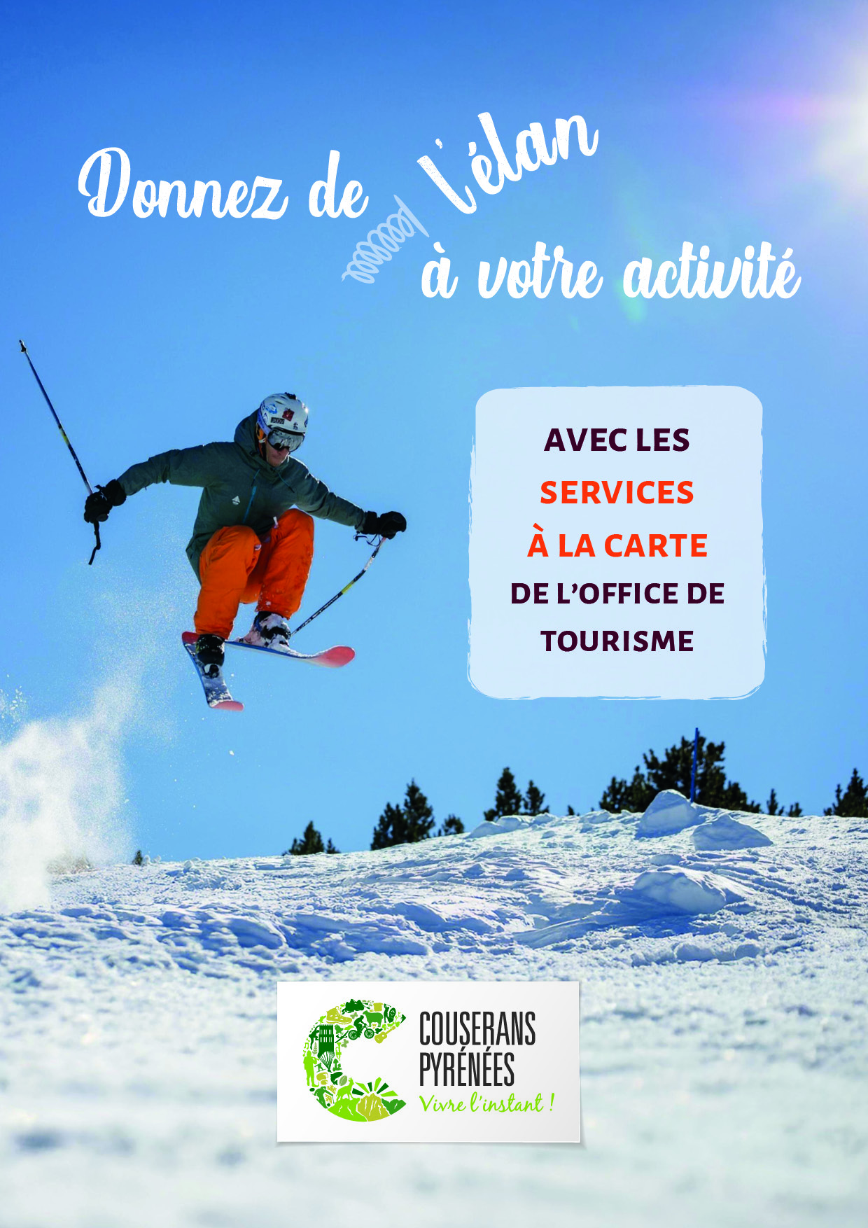 - Notre équipe, de plus en plus spécialisée, met en place des outils et des services d’accompagnement, adaptés à vos besoins ou à vos projets, sur demande sous forme de diagnostics ou de rendez-vous individualisés (réservé aux partenaires de l’Office de Tourisme Couserans Pyrénées).