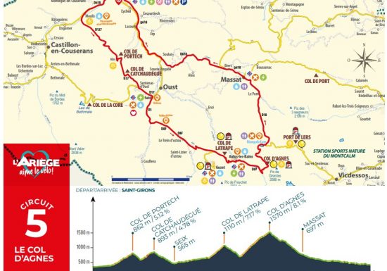 Au départ de Saint-Girons, ce circuit vous offre une osmose de paysages époustouflants. Vous ferez l’ascension de 4 cols dont le Col d’Agnes connu des amateurs du Tour de France. Cette boucle de 6h45 vous fera voyager à travers différents paysages du Couserans. Profitez-en pour faire une halte dans le village de Seix faisant parti des villages incontournables de notre région. Une fois le Col d’Agnes grimpé, vous redescendrez en direction du village de Massat. Et sur votre chemin, vous y trouverez le courtal de Peyre Auselère, un arrêt obligatoire ! Ce courtal abrite plusieurs oris (c’est comme un igloo mais en pierre), utilisés autre fois par les bergers. Un vrai petit coin de paradis situé en bordure de rivière. De quoi bien se rafraichir avant de repartir.