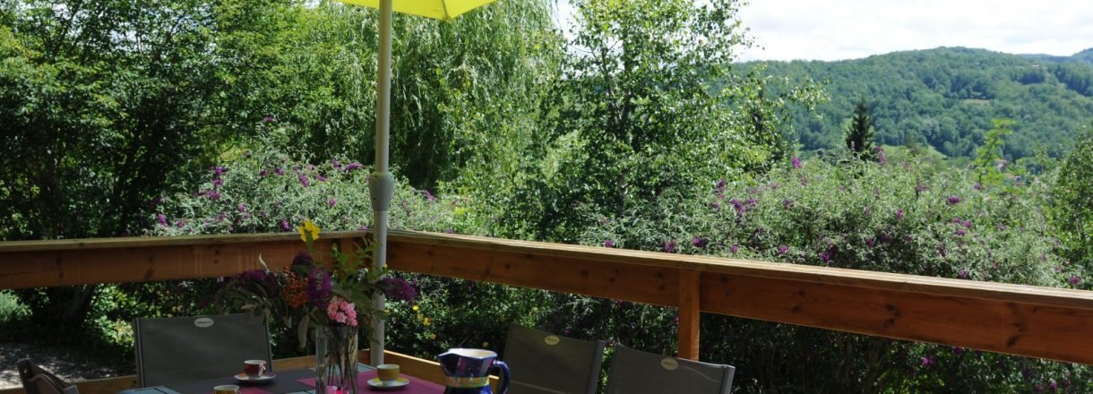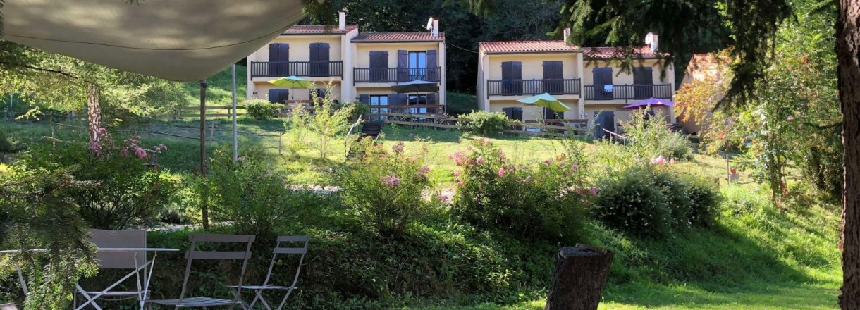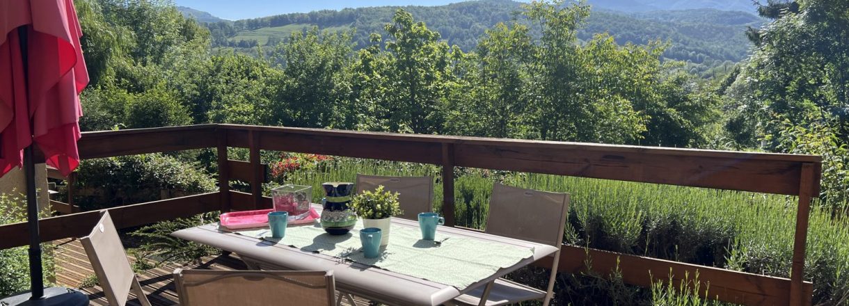 Chacun dispose d'une large terrasse pour profiter de la vie en plein air, partager des repas ou tout simplement contempler la végétation luxuriante du domaine et les montagnes toutes proches.