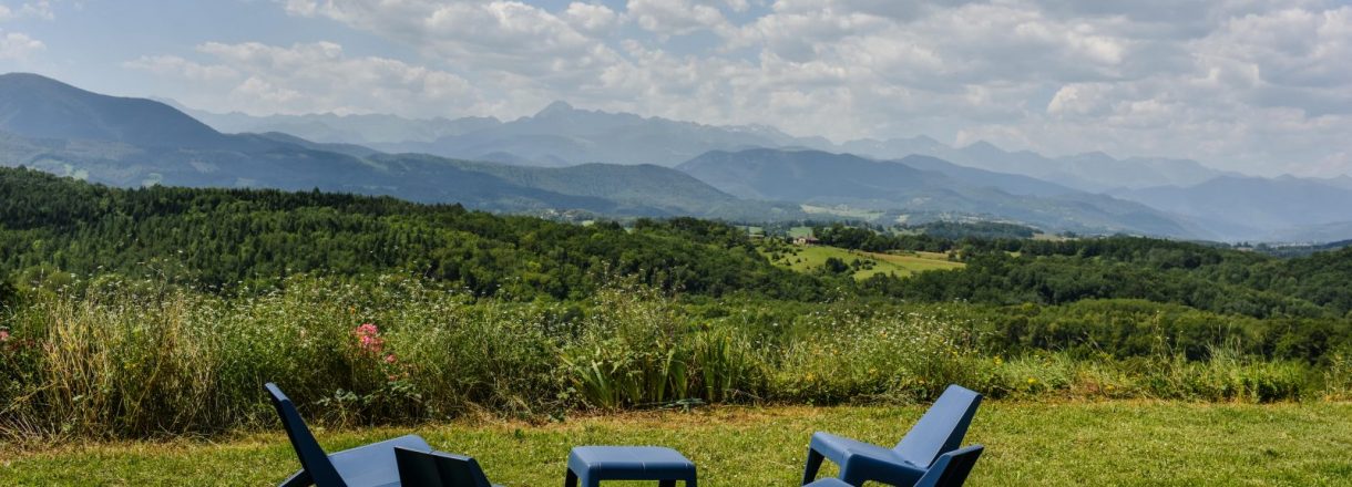 vous accueille toute l'année, avec sa vue absolument sublime, à 190° : le Mont Valier juste en face et jusqu'au Pic du Midi.