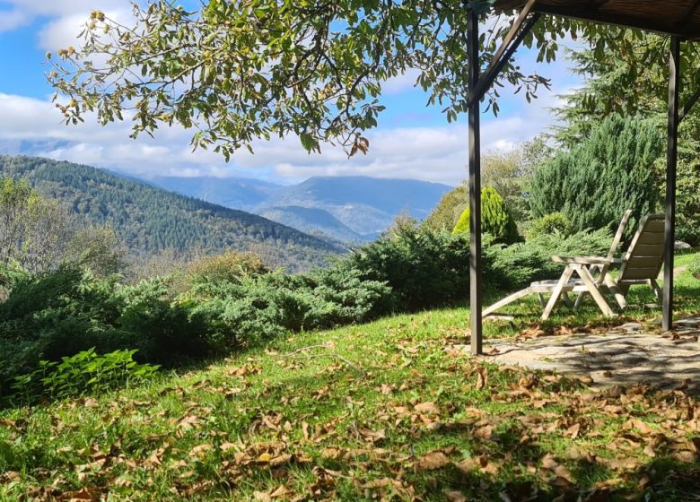 La grange de CAMBOUICH est complètement isolée à la limite des pâturages et de la forêt. Devant la maison sous un gros châtaignier, un abri de jardin d'ou la vue est magnifique.