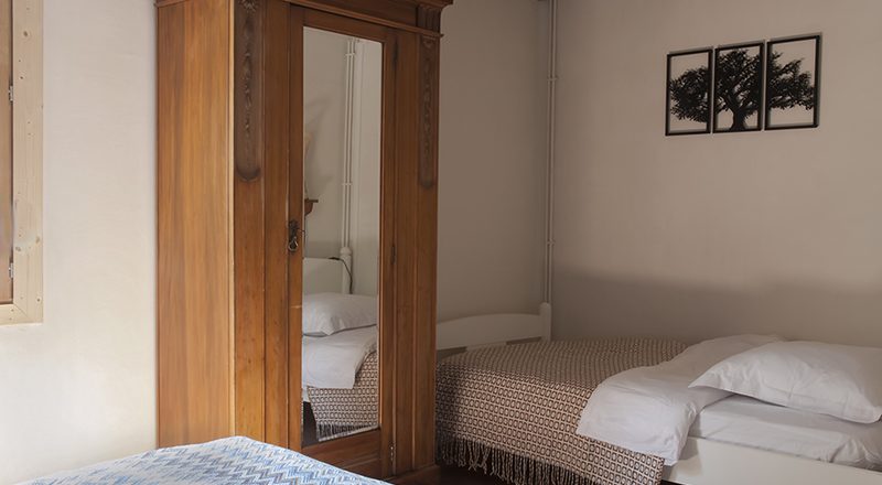 Il y a deux chambres avec des lits doubles de 160 cm, une chambre avec un lit double de 140 cm et un lit simple de 90 cm ainsi qu'une salle de bain avec douche, lavabo et WC. Il y a également un WC séparé.