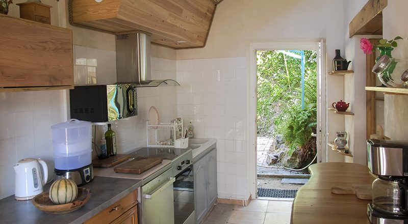 La cuisine est équipée d’une cuisinière avec four, une hotte aspirante, un lave-vaisselle, un réfrigérateur-congélateur, un four à micro-ondes, une cafetière, une bouilloire, une vaisselle et des ustensiles de cuisine.