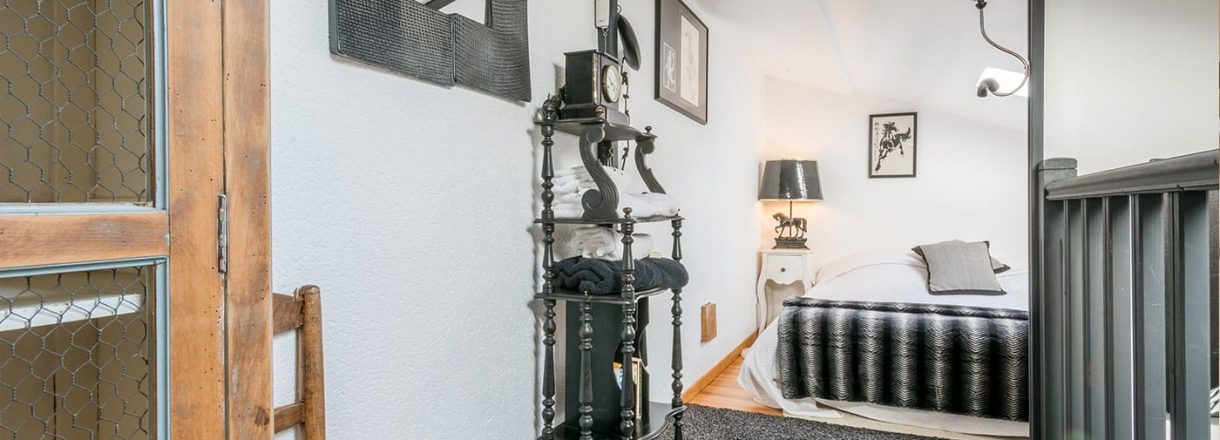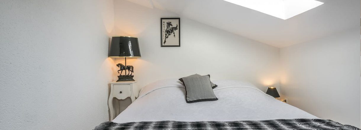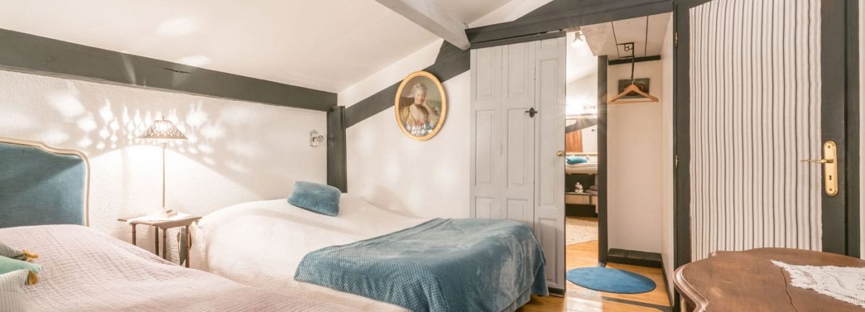 La chambre POTTOCK avec lit de 180 ou 2 lits de 90, douche bâtie et WC privatifs, sous combles.
