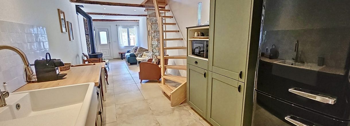 Cette maison de charme aux murs en pierres d’antan qui allie modernité et rusticité vous étonnera par son ambiance chaleureuse.