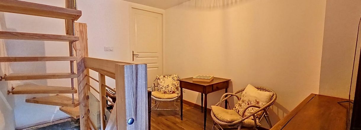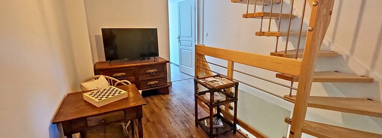 Au premier deux belles chambres : l’une avec 2 lits en 90 et l’autre avec un lit en 160 et balcon, une salle de repos pour petits et grands proposant avec écran plat connecté, jeux et livres.