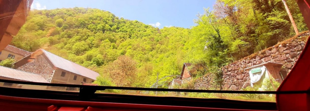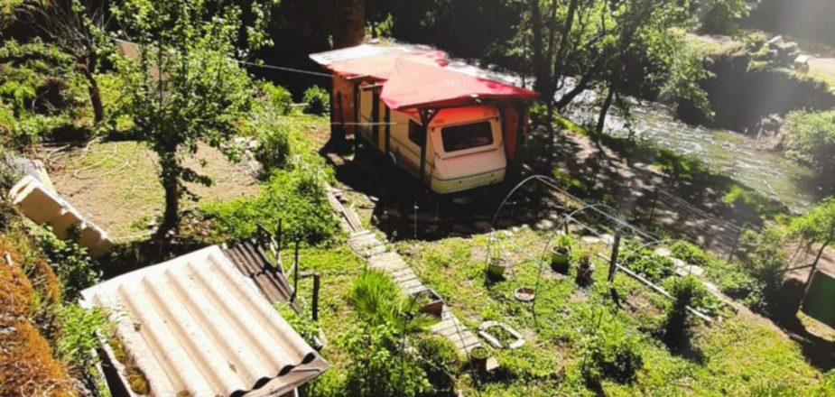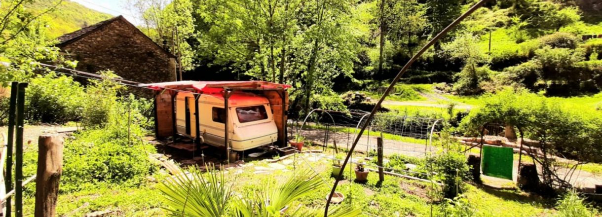 Située sur le GR10, une caravane indépendante se trouve dans un potager bio en bord de l'Estours.