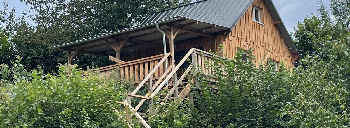 Le chalet a été construit récemment avec les contraintes du lieu dans un soucis écologique.