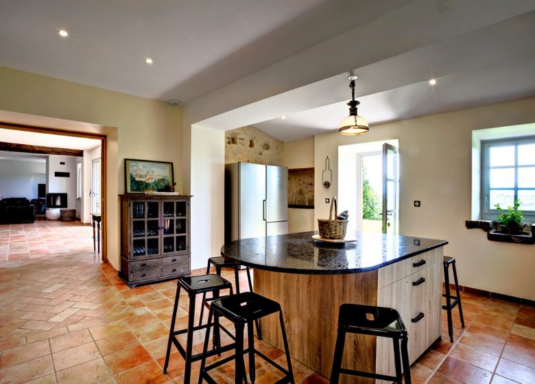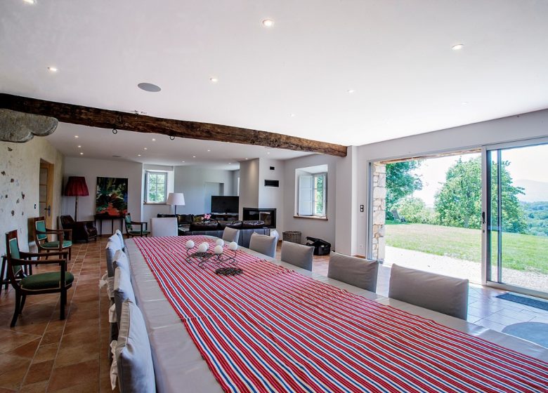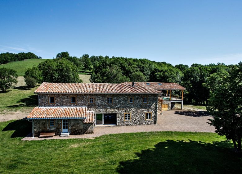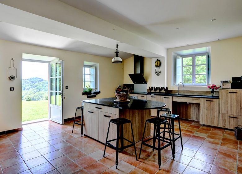 Laissez-vous charmer par le gîte de Caville... Au cœur du PNR et dans un site classé au titre des paysages remarquables, cette ancienne bâtisse en pierres, a été entièrement rénovée dans le respect de l’environnement. Sur place, vous bénéficierez d’une vue panoramique exceptionnelle sur toute la chaîne des Pyrénées, tout en profitant de moments privilégiés, en famille ou entre amis, autour de la piscine chauffée ou au coin de la cheminée. Vous apprécierez également le charme des pièces lumineuses, les volumes généreux ainsi que la décoration très cosy de ce gîte qui vous propose des équipements et des services para-hôteliers haut de gamme pour des vacances tout confort. Au gré des saisons, vous pourrez flâner dans le parc d'une superficie de 10000 m², profiter du verger, des essences endémiques, vous promenez dans les bois environnants ou vous détendre sur les bancs et transats à votre disposition. RDC: grande entrée, cuisine entièrement équipée avec buanderie annexe, grand séjour (80 m²), une chambre, une salle d'eau et un WC indépendant (tous 3 aux normes PMR). Une chambre avec 2 lits superposés et un lit tiroir, un WC indépendant . Étage: 4 chambres (lits en 90X200 jumelables en lit en 180), 3 salles de bains, 2 WC indépendants. Linge fourni, ménage fait à votre arrivée et mise à disposition d'équipements de loisirs (sets de badminton, table de ping-pong, cages de foot, trampoline, terrain de pétanque, baby-foot...) Ce gîte peut également accueillir des séminaires (accès Wifi, grande salle équipée d'un vidéoprojecteur, paperboard). Possibilité d’activités culturelles ou sportives et prestations de bien être sur réservation préalable. Petits-déjeuners à la demande.