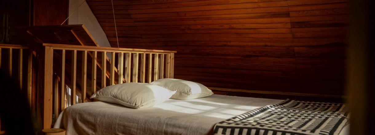 Véritable petit cocon, on y vit au rythme de la lumière: l’éclairage se fait à la bougie, à la frontale et grâce à un panneau solaire. Batterie externe fournie pour recharger les téléphones portables.