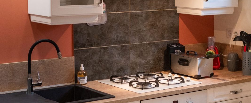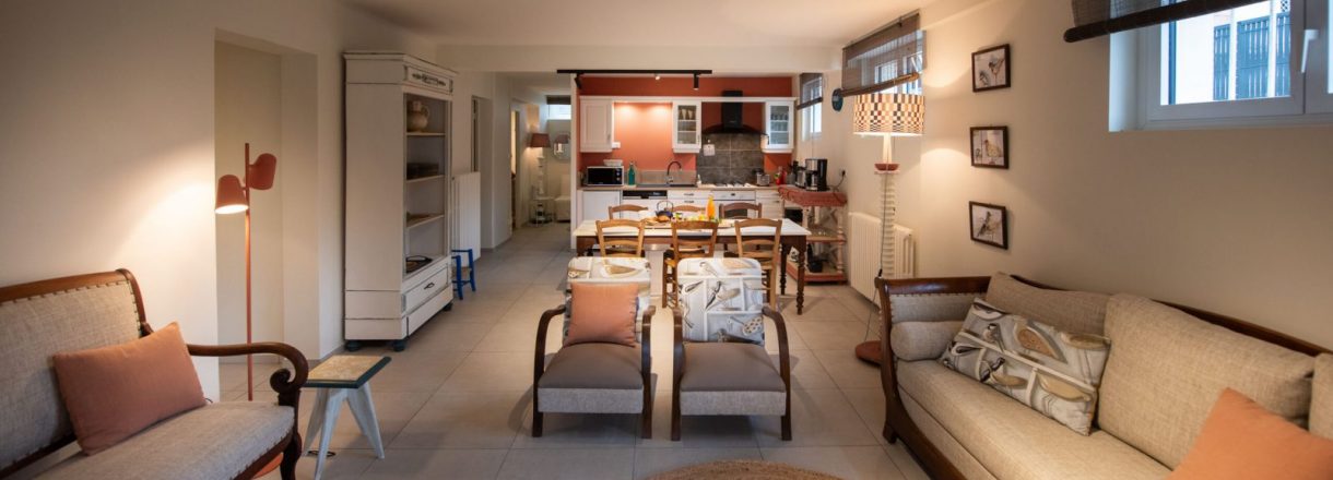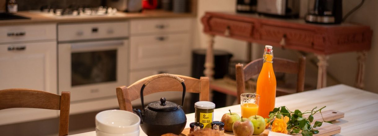 Vous pourrez préparer de délicieuses recettes dans la cuisine toute équipée autour de la table à Manger prévue pour 8/10 personnes.