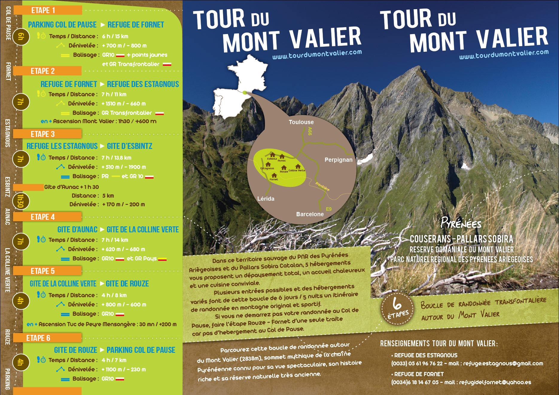 Cette boucle transfrontalière offre une vision du Mont-Valier sous un autre angle et relie plusieurs gîtes d’étapes qui se sont unis pour sa création. Un circuit sportif qui comblera les amoureux d’une nature sauvage et les esprits aventuriers.