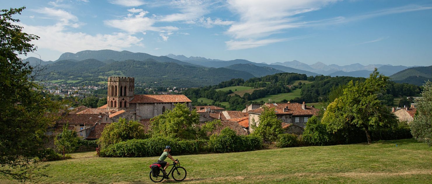 Pour cette première étape ariégeoise vous remonterez la rivière du Salat jusqu’au cœur du Couserans avec de belles étapes à Saint-Lizier ou Saint-Girons (ville accueil vélo). Entre vallées fertiles et panoramas pyrénéens, le parcours dévoile une dizaine de châteaux et manoirs, témoins d’un riche passé. L’occasion idéale de marquer des pauses patrimoniales : à Lestelle, Salies-du-Salat ou Caumont. Puis vous pourrez partir flâner dans la splendide cité épiscopale de Saint-Lizier.