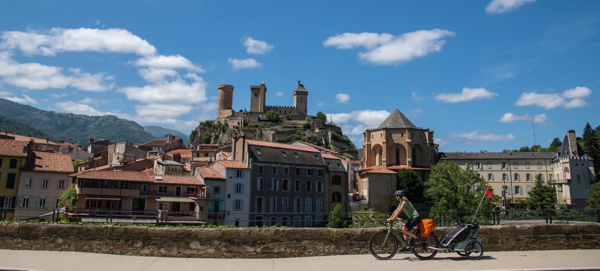 Entre Saint-Girons et Foix, vous emprunterez la voie verte au cœur du Parc naturel régional des Pyrénées ariégeoises. En effet, l’itinéraire reprend les anciens tracés de la ligne ferroviaire qui reliait autrefois la préfecture de l’Ariège. Tout au long du chemin, bocages, vallées verdoyantes et villages du Séronnais se succèdent. Tandis que quelques haltes patrimoniales viennent ponctuer agréablement la balade. Après La Bastide-de-Sérou, la voie s’élève en douceur vers la mystérieuse rivière souterraine de Labouiche, avant une descente paisible vers Foix, dominée par son château majestueux.