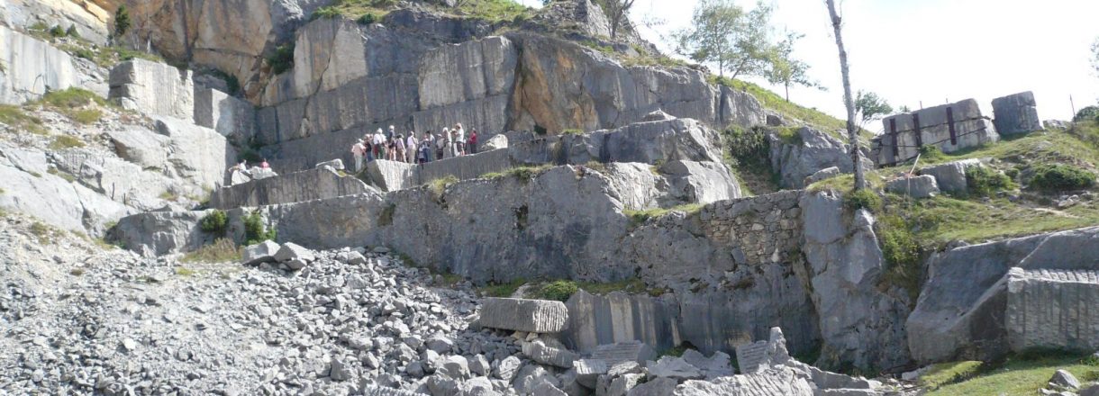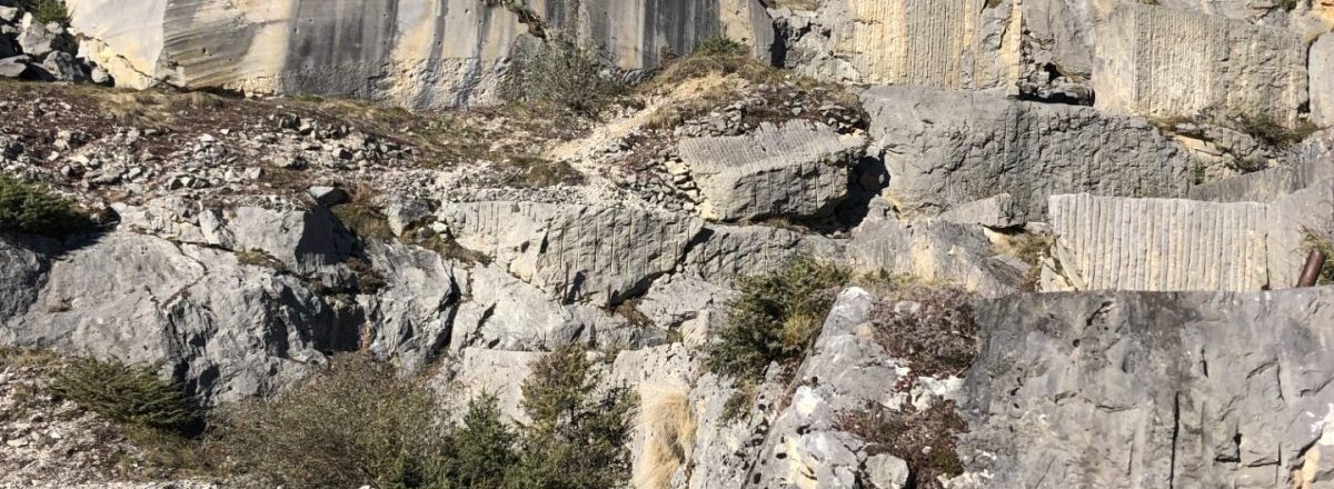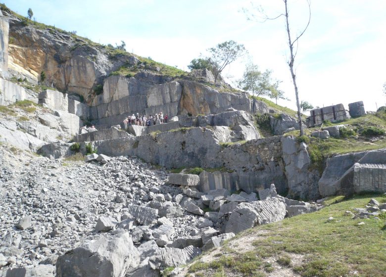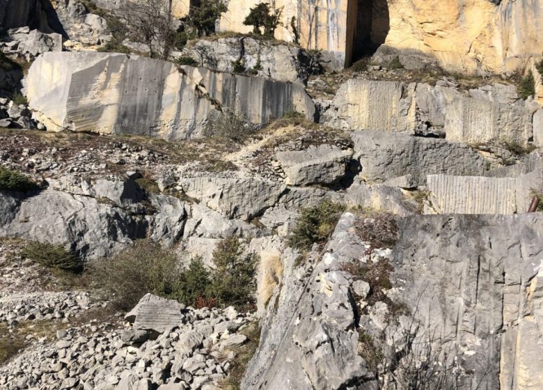 Randonnée sur la soulane du Biros à la découverte de l’ancienne carrière de marbre selon la méthode des gradins droits et du sciage par fil hélicoïdal.