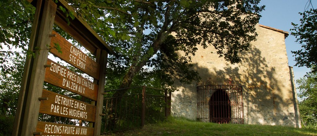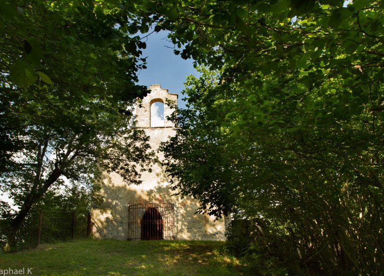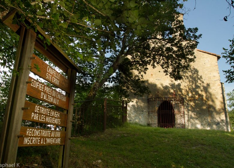 • Monter en direction de la chapelle. Profitez du banc pour souffler un peu avant la dernière grimpette, qui vous conduira jusqu’à la chapelle Sainte-Croix.