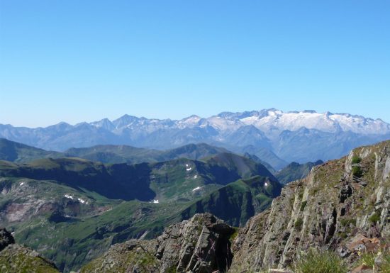 Le panorama s‘étale sur 360° et offre une vue imprenable sur les montagnes pyrénéennes.