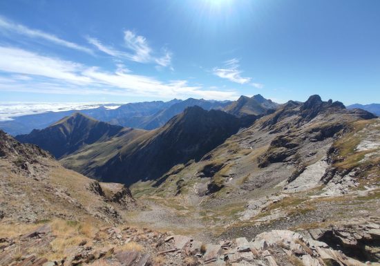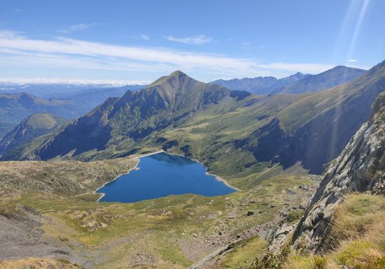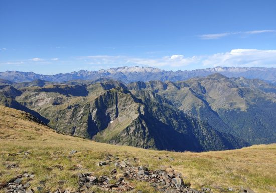 Le sommet du pic de l'Har tient toutes ses promesses en matière de belvédère : les hauts sommets du Couserans y affichent tous présents le long de la crête frontière.