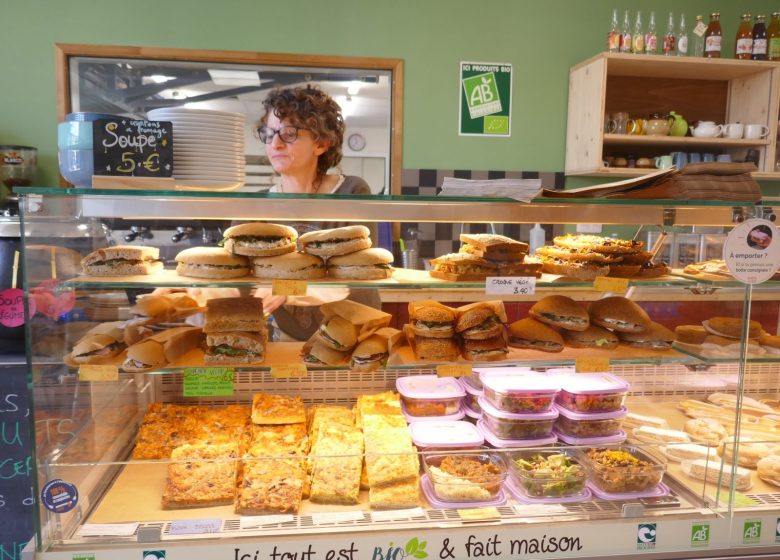 Le salon de thé vous propose une large gamme de produits biologiques pour un moment gourmand salé ou sucré : pains, pâtisseries, viennoiseries, biscuits et de la petite restauration salée.